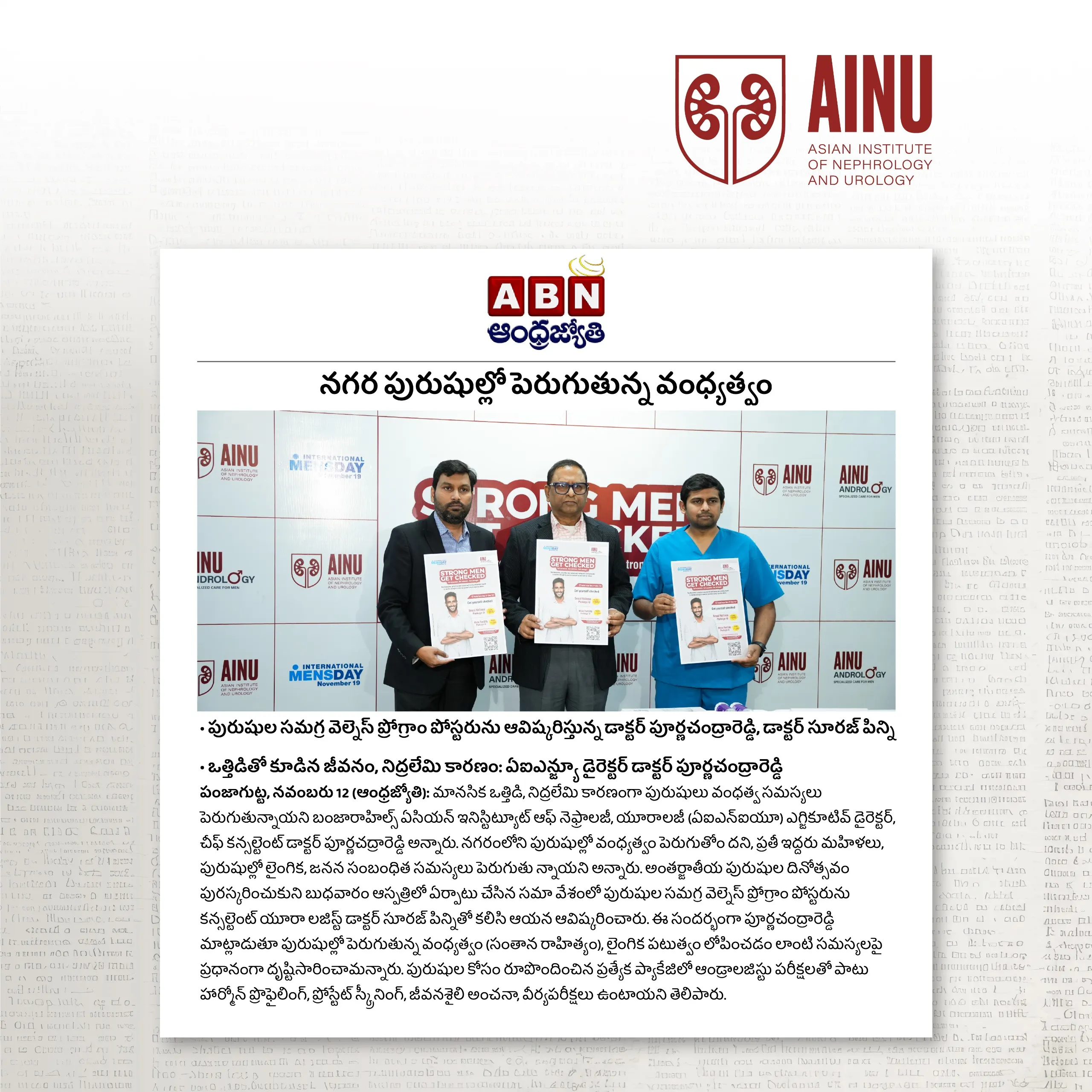 Raising Awareness for Men's Health: AINU Hospital's Role in Urology and Nephrology - Eenadu