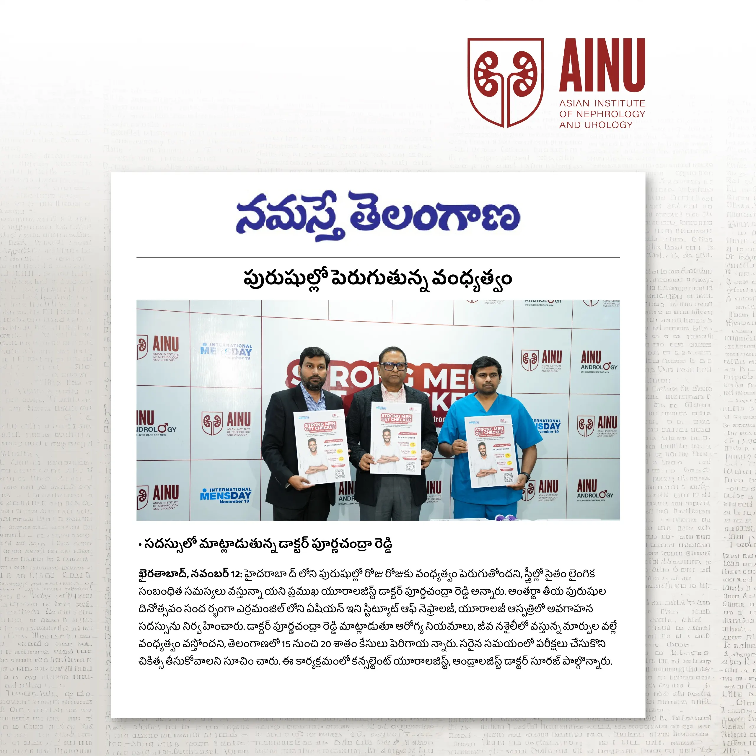 Raising Awareness for Men's Health: AINU Hospital's Role in Urology and Nephrology - Namaste Telangana