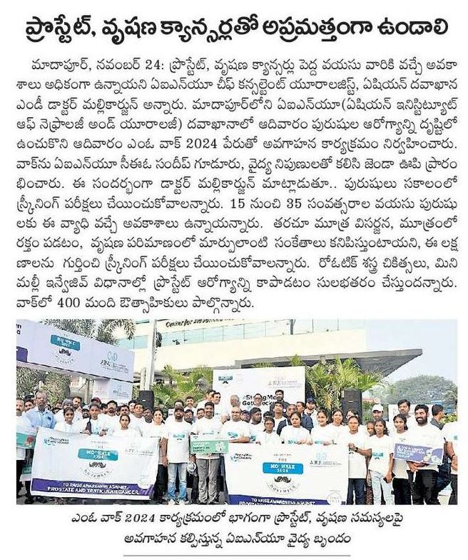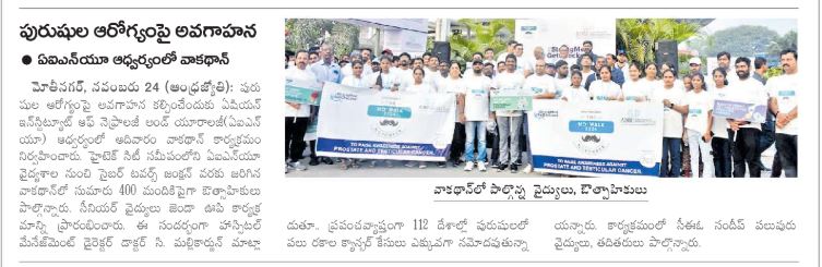 Keeping in mind the prevalence of this kind of cancer in the country and the complications that it can trigger, AINU Hitec-city took a step today to spread awareness among the people about men's health and the importance of early screening. This kind of walkathon brings men's health into focus.