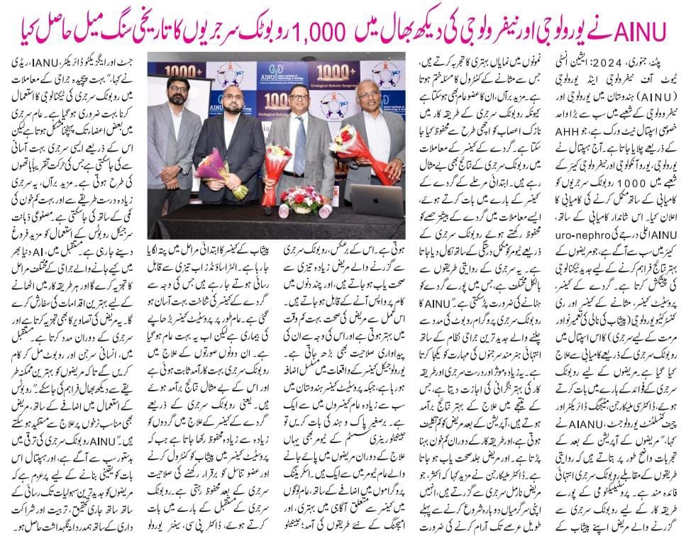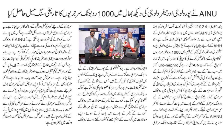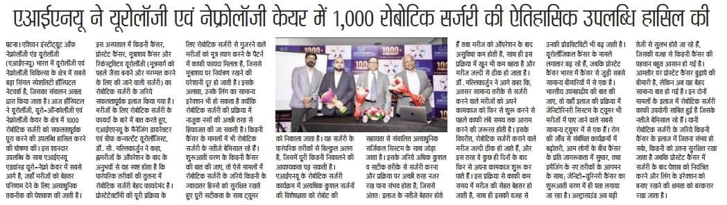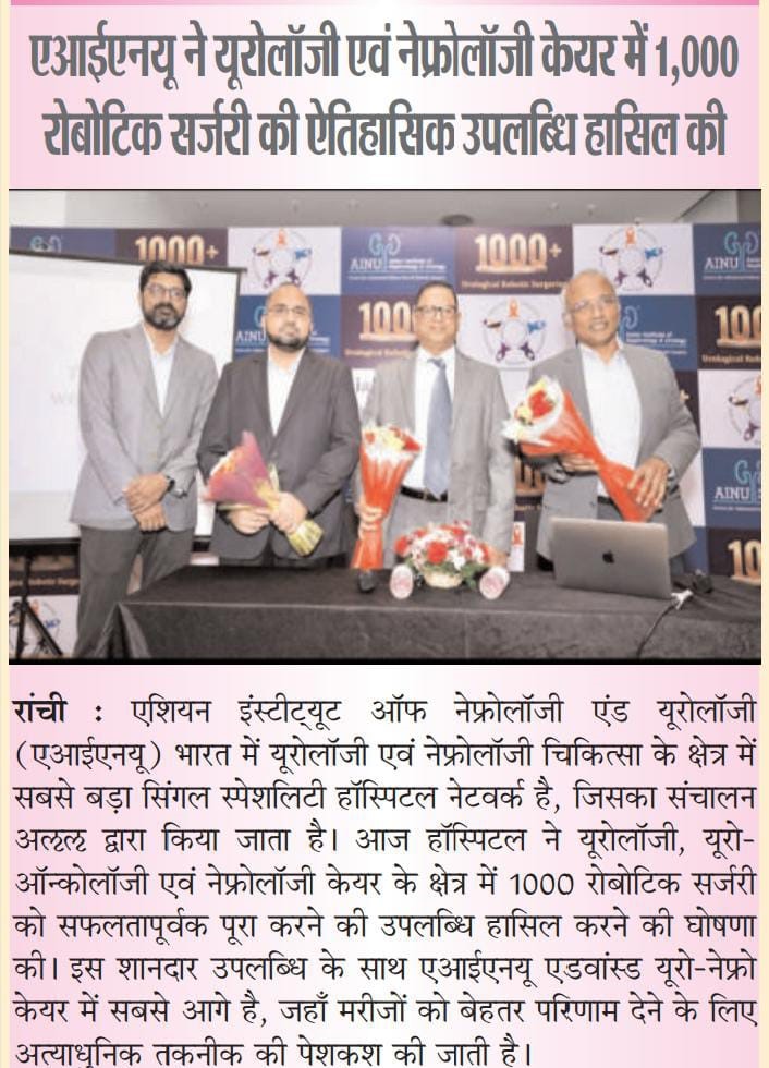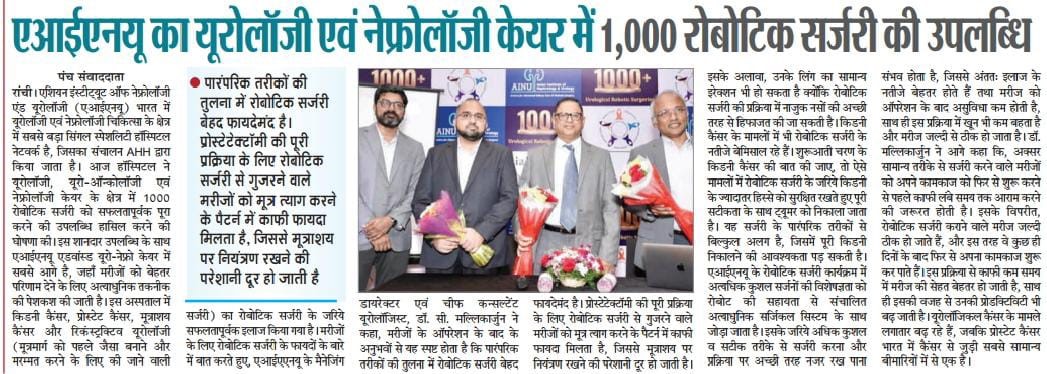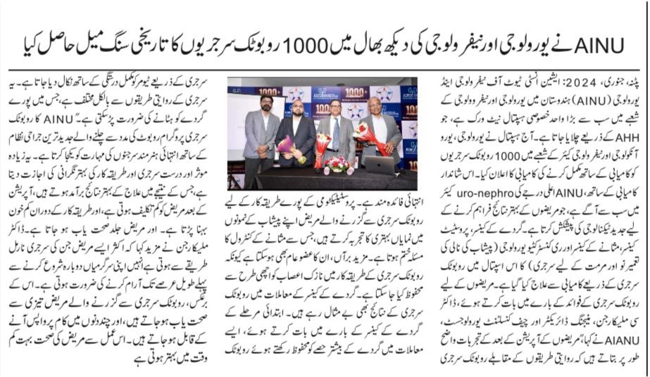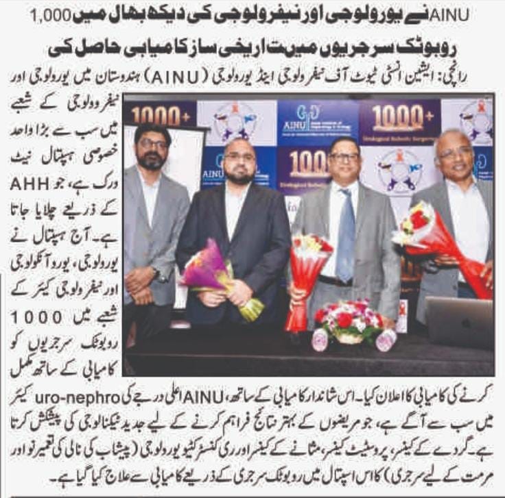 “AINU observes landmark achievement of 1,000 Robotic surgeries in Urology and Nephrology Care”