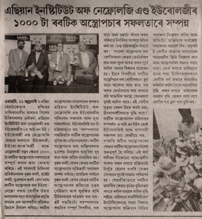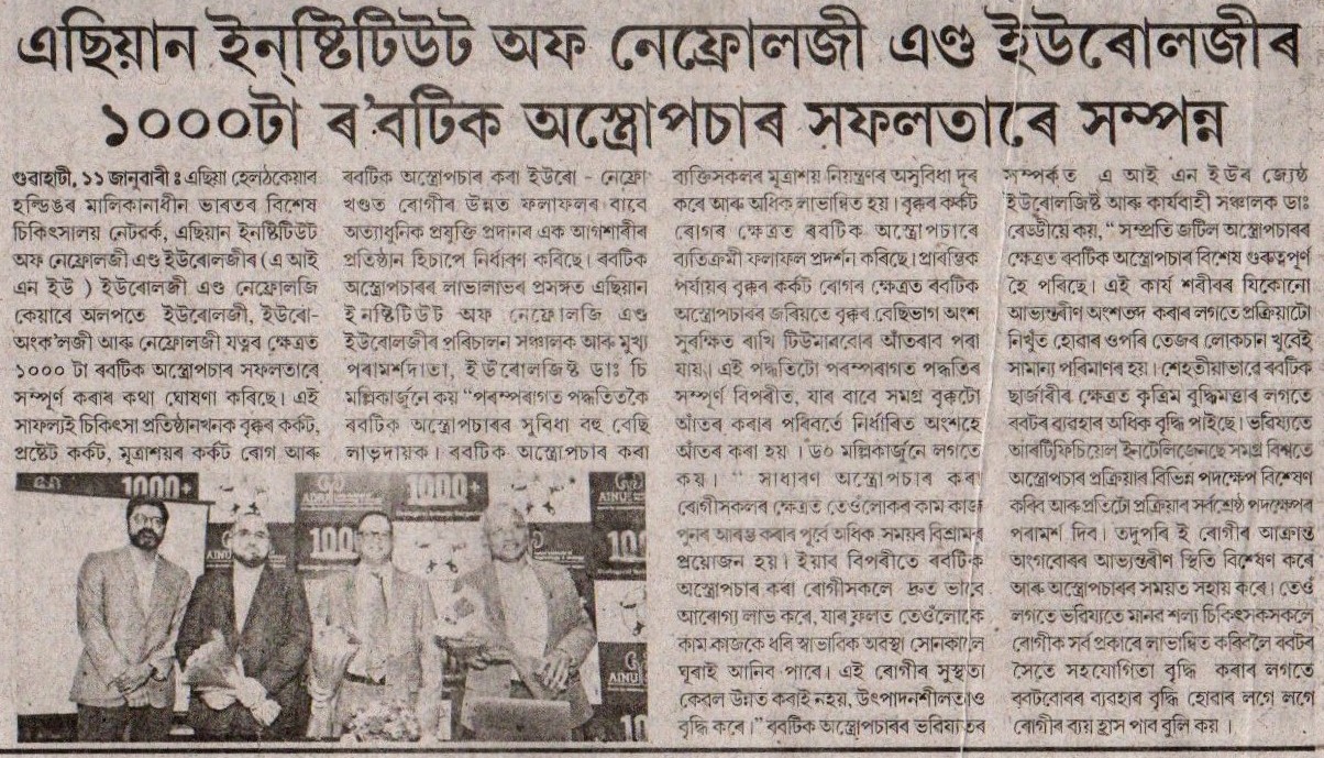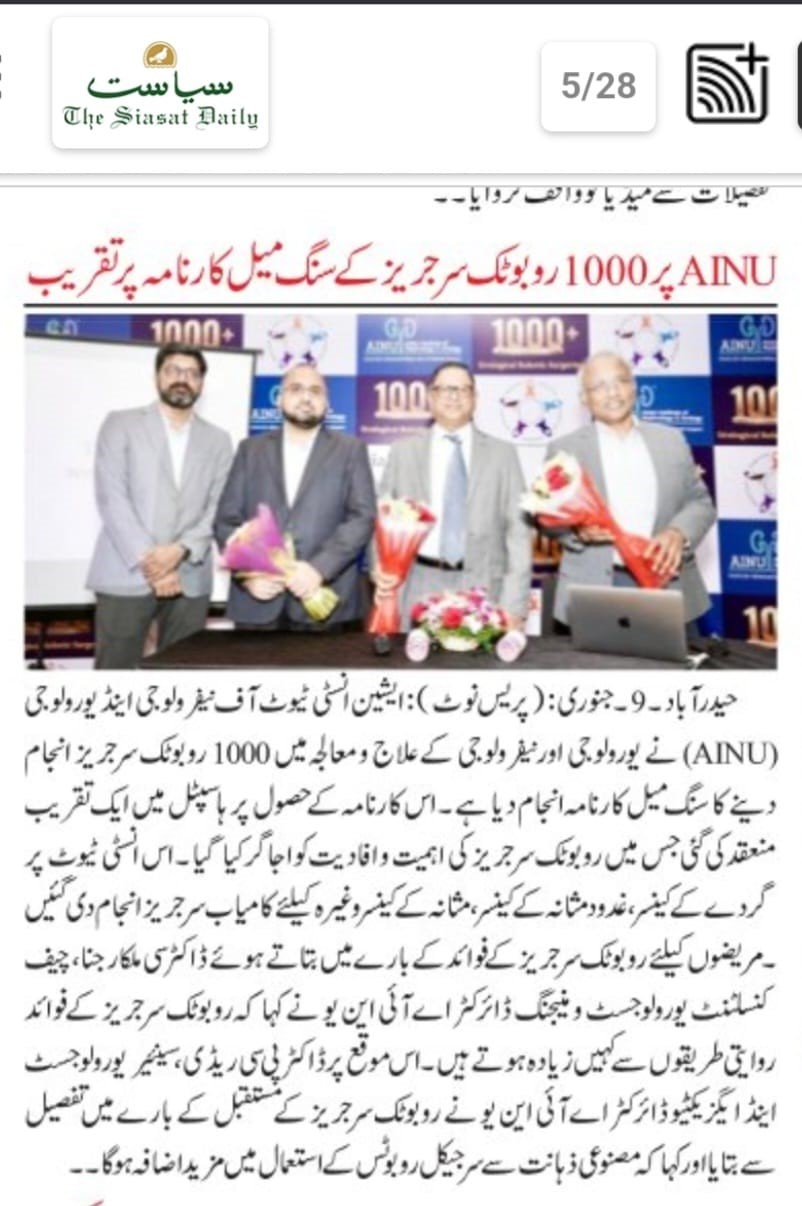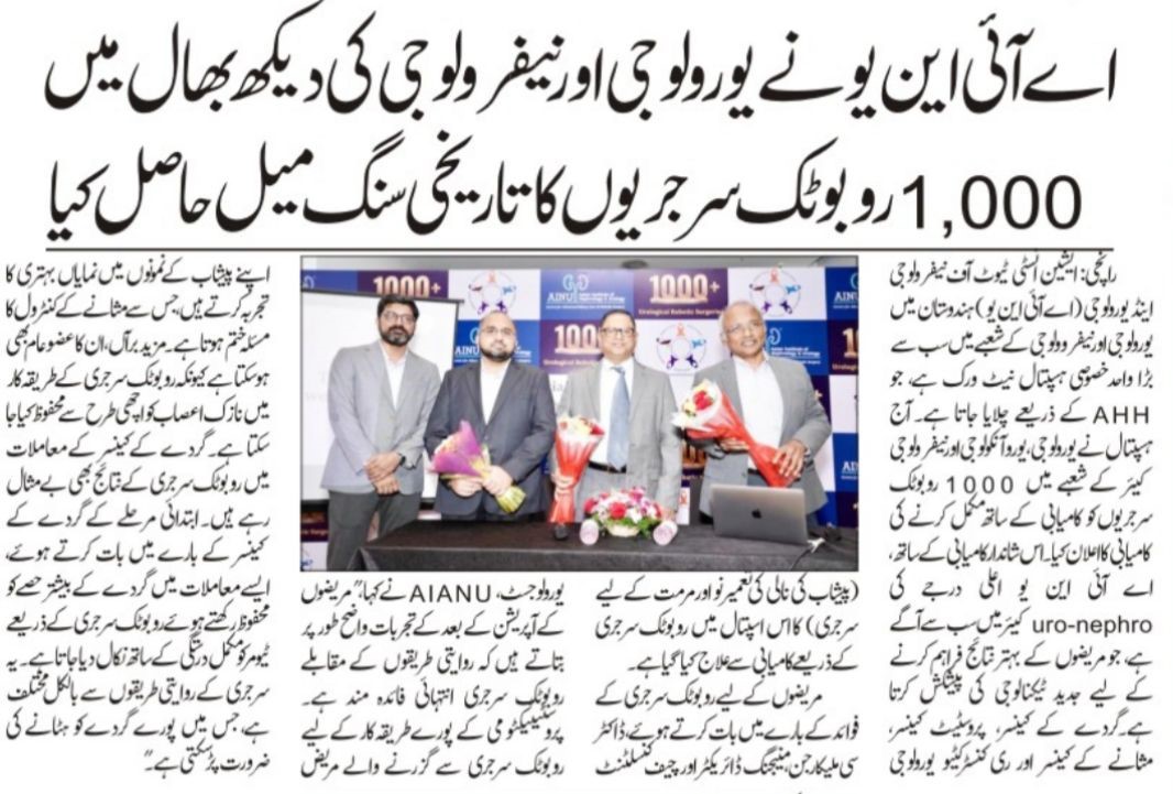 “AINU observes landmark achievement of 1,000 Robotic surgeries in Urology and Nephrology Care”