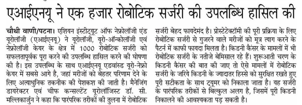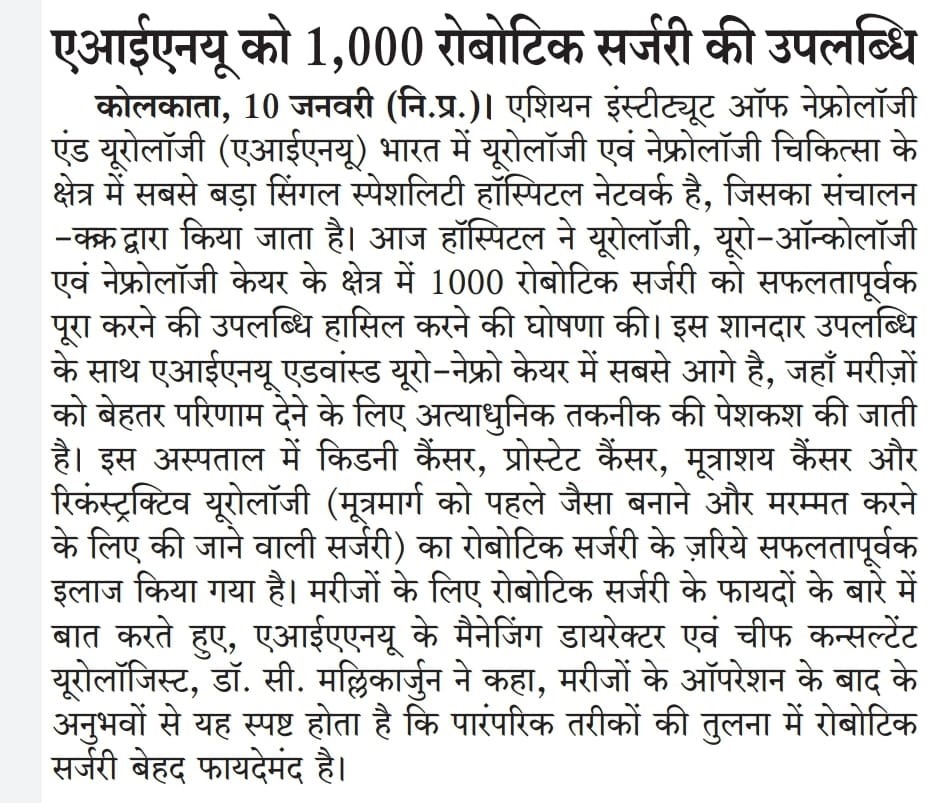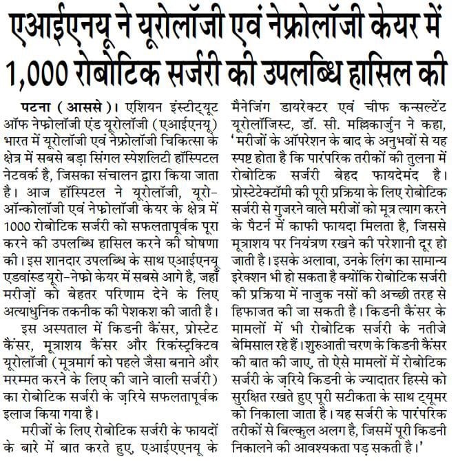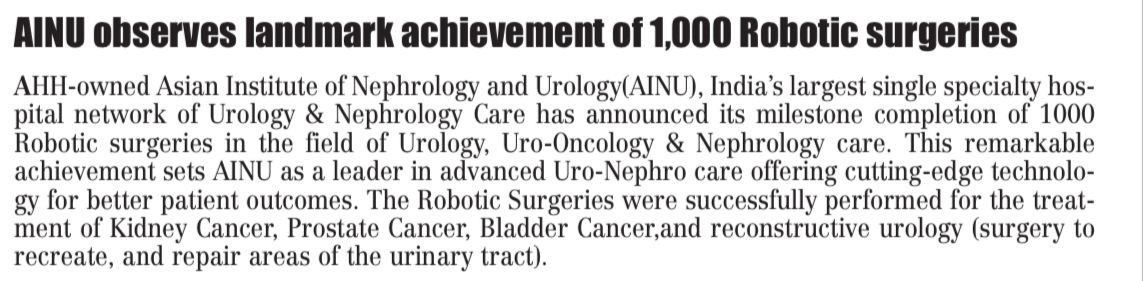 Speaking about the benefits of Robotic surgeries for patients, Dr. C. Mallikarjuna, Chief Consultant Urologist & Managing Director, AINU said “The advantages of robotic surgery over traditional methods are evident in the post-operation experiences of patients. Following a complete prostatectomy, individuals undergoing robotic surgery benefit from a more consistent urination pattern, eliminating the discomfort of bladder control, they also can have a normal penile erection as the delicate nerves can be effectively preserved. In the case of kidney cancers Robotic surgery has also displayed exceptional outcomes. In cases of early-stage kidney cancer, the precision of robotic surgery allows for the targeted removal of tumors while preserving the majority of the kidney. This approach stands in stark contrast to traditional methods that may necessitate the removal of the entire kidney.”